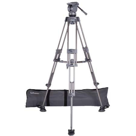The Libec LS-38M(2A) professional tripod system includes the T72 aluminum tripod, H38 fluid head, PH-3 pan arm, MS-2 mid-level spreader and the TC-60 soft case. Capable of supporting up to 17.6 lb (8 kg), the LS-38M(2A) is intended for full-sized camcorders for ENG applications. The H38 fluid head offers fixed counterbalance, silky-smooth fixed fluid drag and a convenient, industry-standard 75 mm levelling ball. Setup is a snap with the oversized sliding camera plate with 40 mm of travel to balance uneven configurations. Dual rosettes allow left-handed or two-handed operation.