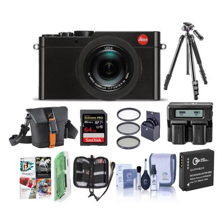 Leica D-Lux (Typ 109) Digital Camera - Bundle With Camera Case, 64GB SDHC U3 Card, Spare Battery, Tripod, Dual Charger, 43mm Filter Kit, Cleaning Kit, Memory Card, Card Reader, PC Software Package