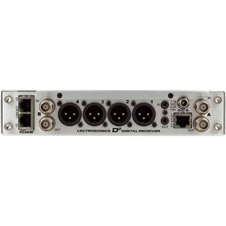 The DSQD Half Rack Receiver with analog and digital Dante network audio outputs utilizes the Lectrosonics signature digital architecture with remarkable audio quality and ultra-low latency. The receiver includes an extended operating range rivaling the best analog and Digital Hybrid Wireless systems with continuously tunable tracking filters covering 470.100 - 614.375 MHz.