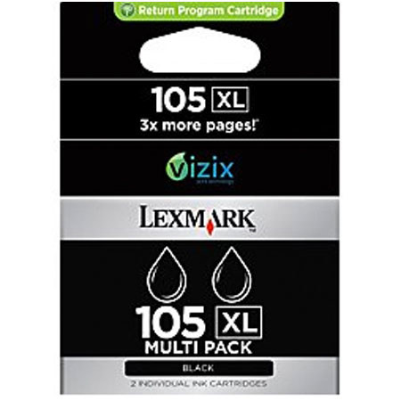 Lexmark's 105XL 2-Pack Black High Yield Return Program Ink Cartridge is a high-yield ink cartridge.