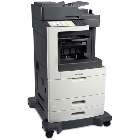 The Lexmark MX811dme B&W Laser Multifunction Printer offers print, copy, fax, scan, and email functions.