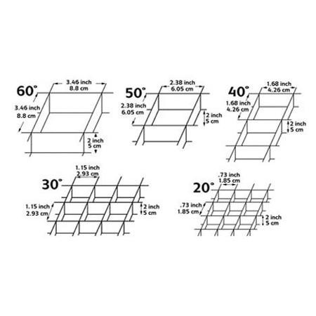 The Lighttools Egg Crate Fabric Grids come in a variety of concentration angles, ranging from 20 to 60 degrees, allowing for a tailored lighting experience.