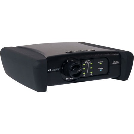 The wireless microphone system shall utilize digital conversion and operate in the 2.4 GHz ISM band. The system shall transmit a digital representation of the audio signal distributed over four separate RF frequencies that include a unique digital code sequence that identifies the transmission to the receiver thus locking out all other sources of interference without the need of squelch circuitry.