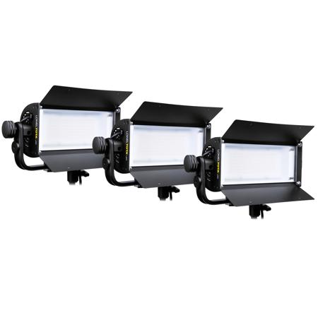 The TotaLED is a portable flood light that emits 4275 lux of flicker-free continuous light. It operates on AC or battery power and it draws only 70 W to deliver the equivalent output of a 750 W tungsten bulb. The TotaLED is daylight balanced (5600 K) and with a CRI of 96.3, it delivers excellent color accuracy. Its power output is controlled by a stepless dimmer knob that ranges from 100% to 0% brightness.