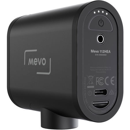 3.5mm TRS, USB-C for supported audio interfaces/converters, from iOS or Android host-device and Mevo Camera app, or additional iOS or Android device and Mevo Mic app