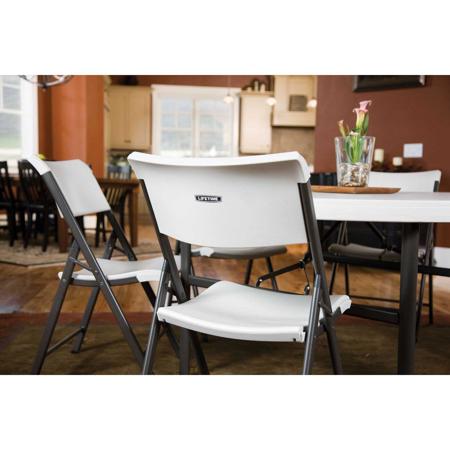 The Lifetime 80191 Light Commercial Contemporary White Granite Folding Chair (4-Pack) is constructed for durability and lightweight portability and the Lifetime Contemporary Chair offers a modern style as well. Sure you'll be impressed with the sleek design and contoured comfort of this portable chair. UV-protected polyethylene plastic and powder-coated steel construction makes these chairs ideal for indoor or outdoor seating. No fading, warping or rusting. Water and stain resistant. Easy to clean, with very low maintenance. This portable, lightweight chairs fold up for easy transportation and storage. This stylish contemporary chairs will compliment any professional setting or formal event.