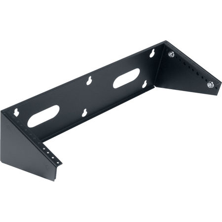 Quintessential space saving solution mounts to a wall or desk to hold equipment vertically or horizontally. Accommodates a variety of equipment depths. Two can be used together for 4-point mounting.