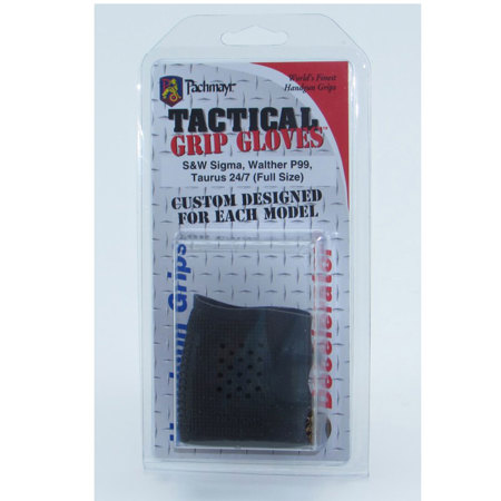 The Lyman Custom Slip-On Tactical Grip Glove is custom molded for S&W Sigma Pistols. Ideal for polymer frame handguns with no replacement grips available. Made from Pachmayr Decelerator material, Grip Glove delivers enhanced control and will absorb recoil. The custom fit feels like an extension of your handgun grip. The ultra-soft, ultra-stretchy material makes installation a snap. No trimming, no need for soap and water. Distinctive ventilated side panels and finger grooves provide more instinctive gun orientation and a professional look.