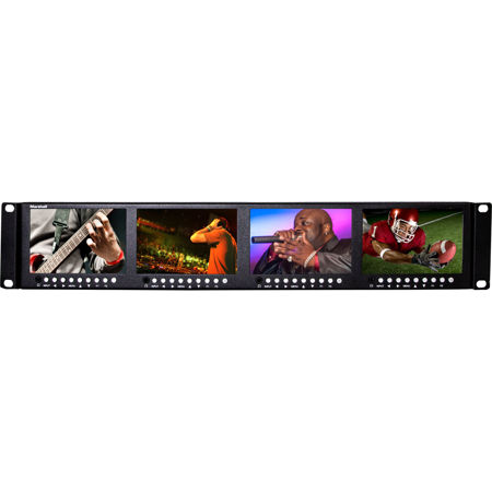 The Marshall ML-454 Quad 4.5" Screens LCD Display is a feature-packed, economical solution perfect for fly-packs, control rooms, routing rooms and countless other video system applications. Looping video inputs set this product apart from similar-looking products. With the ML-454, you are not limited to the single SDI connector you may find on competitor models. Standard power and tally connections as well as a logical menu structure make this display an easy choice for flexible system designs.