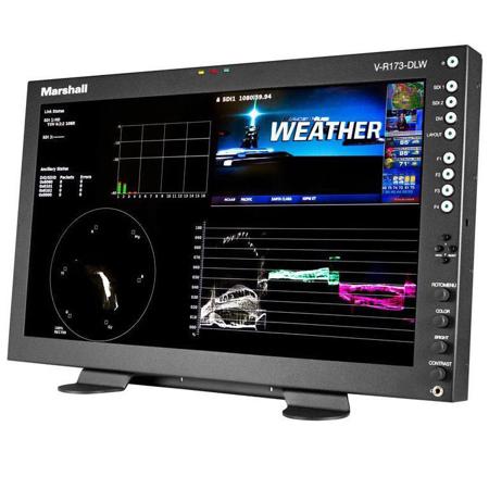 The 17.3" V-R173-DLW monitor features 3G, Dual Link and DVI inputs and displays Waveform & Vectorscope, Digital Audio and a host of additional information in a 10 bit "no compromise" video path. In Quad-View mode, the input signal can be broken into four quadrants that simultaneously displays all of the critical information needed to keep your signal path within all critical specifications.