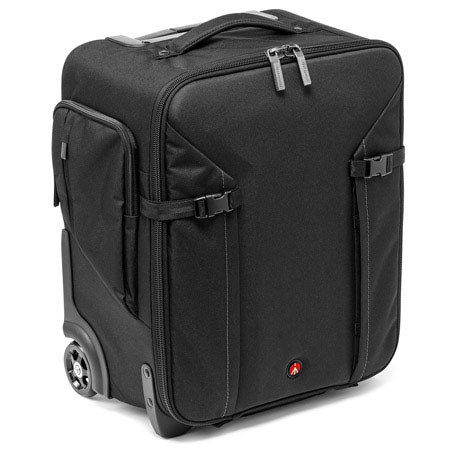 The Manfrotto Roller Bag 50 is a professional travel trolley bag designed to hold 2 pro-sized DSLRs, 2 x 70-200 F/2.8 lenses, 4-5 extra lenses, 2 flashes, a 17" laptop, tablet, tripod and much more. It complies with airline regulations and features the CPS - Core protection System - and the Exo-tough multi-layered construction to give the maximum protection.