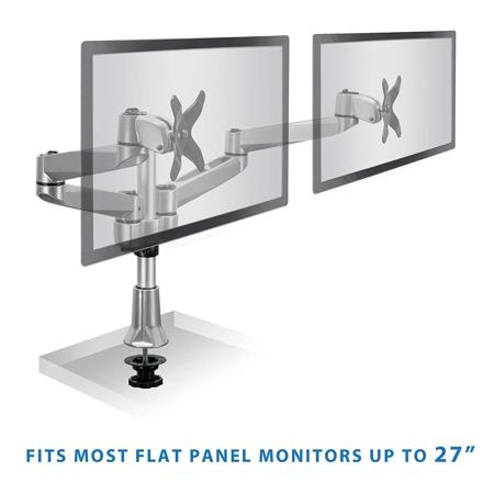 Don't ever worry about stability again. Our grommet clamp design will clinch your mounts tightly to the desk for a tight bond. The grommet clamp takes mere minutes to assembly and is easy to install. The heavy duty construction can support 19.8 lbs per monitor which allows for a large compatible range. This mount is given a scratch resistant reinforcing coat of silver to ensure a quality modern appearance.