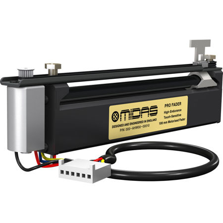 PRO FADER (200 mm) is supplied as a set of five faders and is suitable for use in the input and output fader bays in all MIDAS PRO Series digital consoles and control centres. PRO FADER (200 mm) is also a replacement for industry standard parts such as Penny+Giles PGFM3200, Alps K-Fader and other similar 100 mm motorized faders.