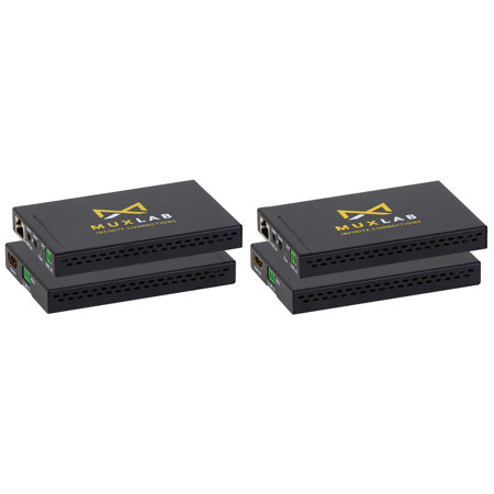 The HDMI Extender Kit 70m, HDBT, UHD-4K (100509) allows HDMI equipment to be connected up to 131ft (40m) @ 4K/30 (4:4:4) or 4K/60 (4:2:0) resolution, or up to 230ft (70m) @ 1080p Deep Color via one (1) Cat 5e/6 unshielded twisted pair cable in a point-to-point configuration. Pass-through of bi-directional IR and RS232 along with CEC is supported for control of end devices.