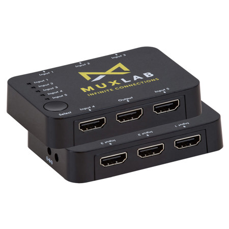 The HDMI 5x1 Switcher 4K/60 (Model 100526) allows one of five HDMI sources to be switched to one HDMI display. The switcher supports resolutions up to 4K (3840 x 2160) @ 60Hz, 8-bit color, it also supports HDR, HDR10, Dolby Vision, HLG and all 3D video formats. The HDMI Switcher 5 x1 has low power consumption and the switching selection may be controlled locally via one (1) push button and remotely via IR.