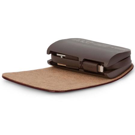 Power up with Moshi's IonBank 3K, a stylish, compact portable battery. Its soft vegan leather cover opens to reveal a built-in Lightning cable to charge and sync your iOS device as well as a USB cable for recharging the battery pack. IonBank 3K features 2.1 A fast-charging for a quick power boost when you need it most. Its 3200 mAh battery gives your iPhone 6s 120% more battery life and SmartSense circuitry lets you charge your device and IonBank together at the same time.