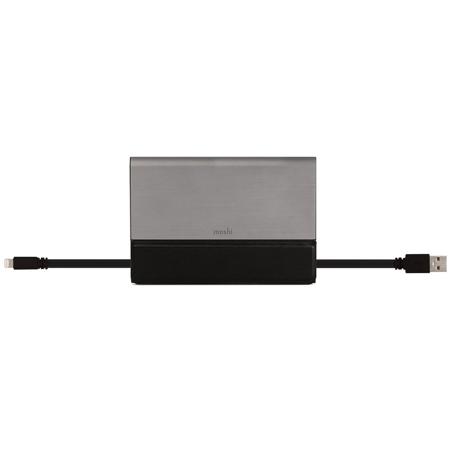 Power up with Moshi's IonBank 5K, a slim, stylish portable battery designed with anodized aluminum and vegan leather accents. Unlike most battery packs which require you to carry extra cables, IonBank includes hideaway Lightning and USB cables that minimize clutter while on-the-go. IonBank 5K uses the latest in lithium-polymer technology to deliver a capacity of 5150 mAh, enough to recharge your iPhone 6s up to 2 times.