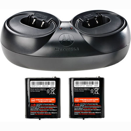 This kit allows you to use your AA alkaline two-way radio as a NiMH rechargeable two-way radio. Enjoy up to two hours of talk time and almost twelve hours of standby time. Includes two NiMH rechargeable batteries, dual pocket charger with two insert adapters, and wall charger.
