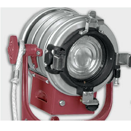 The Mole-Richardson 300W Betweenie Solarspot Fresnel Tungsten Light features circular channel construction adds strength, more efficient airflow for cooler operation and lower seal temperature of the globe for longer life. Front opening door for easy globe access. It features focusing knob on front and rear for focusing from spot to wide flood with smooth even field. It is designed for use in Motion Picture, Television and Still Photographic Studios as a keylight, backlight or kicker.