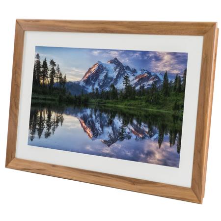 First of all, the craftsmanship on the frame and mat is impeccable! It is a completely different animal than the first electronic picture frames that were on the market. (I have the walnut frame) As for the image quality, it too is far superior to those first generation photo frames. It really has the presence of a framed print. I love everything about this device, except that when I rotate the frame from vertical to horizontal (or vise versa), it doesn’t always sense the orientation change right away, and sometimes displays crops of the selected image, or rotates it the wrong way. I haven’t called Customer Service about this yet, will need to report back as to whether that was a glitch in my individual unit or not. My other issue that keeps me from giving it five stars is that the rotating mount is a bit tricky to hang the frame on while keeping it plugged in. I have had it come unplugged when rotating the frame a couple of times, so have had to lift it up, plug it back in, and set it back on the rotating mount. Even with these quirks, I dearly love this device! It makes me happy every day. Really! It’s just so beautiful!