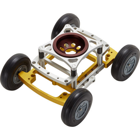 The Medium Rover dolly shines at continuous moves across any flat surface. The 5" soft foam wheels achieve smooth motion and clean starts and stops over a wide range of surfaces that are difficult for traditional dollies, including carpets. The Rover is great for getting a quick shot while the Glide is being set up or broken down. With the quick release Hi-Hat, going from one to the other is nearly instantaneous. By locking the pan on the camera head, an operator can even steer the Rover to achieve very subtle curves.