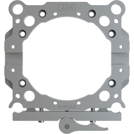 This is their Level 5 Duplex adapter, which allows you to mount your Small or Medium MYT Camera Hi-Hat on the Level 5 camera support plate with the use of a latch. Your MYT Hi-Hat can be mounted on the Level 5 naked, but cannot be secured completely without the addition of either SRP Locking Bolts or the MYT Duplex. The Level 5 Duplex can be mounted without the need to remove the existing flush plate and doughnut.