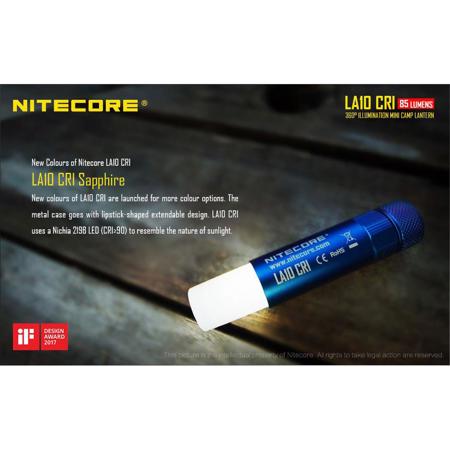 Go lightweight with the new Nitecore LA10 CRI. This innovative camping light is incredibly compact, weighing only 2 oz, after battery installation. Despite it's petite size, this light packs an impressive 85 lumens of brightness and up to 11 yards of illumination with a Nichia NVSL219B LED designed to enhance natural color. With added functionality such as the lanyard for hanging, magnetized tailcap for added convenience and a retractable diffuser for compact transportation and storage, this light is the perfect addition to your camping gear! Whether going out into the back country for an extended expedition, car camping over the weekend or using for night photography or light-painting, this light is a great tool you'll want to keep on hand!
