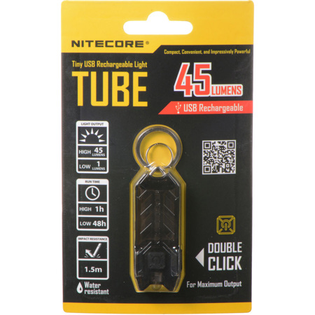 The Nitecore TUBE is an incredibly popular and versatile multi-purpose keychain flashlight. Equipped with a sturdy dual ring metal attachment, the TUBE is designed to attach to your keys and securely stay in place. Equipped with a high performance LED offering a maximum output of 45 lumens, this light has two brightness levels to choose from so you have instant light conveniently accessible without having to drain your phone battery. Plus the built-in rechargeable battery and onboard USB charging functionality mean you'll always have power when you need it. With all these great features, this little light is sure to meet all your illumination needs!