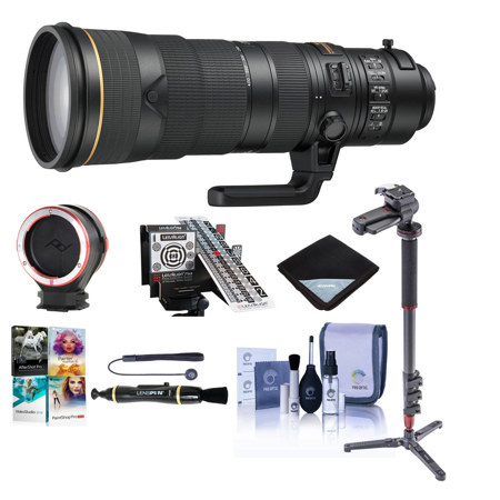 So far, I have only used this lens for football games. It is beyond belief. You can stand behind the back end zone line and using auto focus and the built in teleconverter and keep the subject in perfect focus as he runs toward your location. I use a D5, the fastest continuous shutter action and I am blown away with the results. The tripod that comes with this bundle handles this lens very nicely and the other items are super additions to my camera bag.