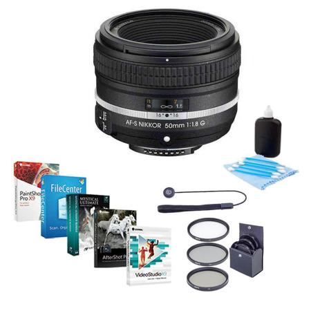 The AF-S NIKKOR 50mm f/1.8G Special Edition is a remarkable blend of classic exterior styling and modern optics and lens technologies. Its focus ring features the easy to grip knurling/hatching from classic manual focus lenses, while its autofocus system uses Nikon's innovative Silent Wave Motor (SWM) for ultra-fast, near silent precision focusing. SWM also allows for seamless manual focus override when fine adjustments are desired. The AF-S NIKKOR 50mm f/1.8G Special Edition will give you years of brilliant performance.