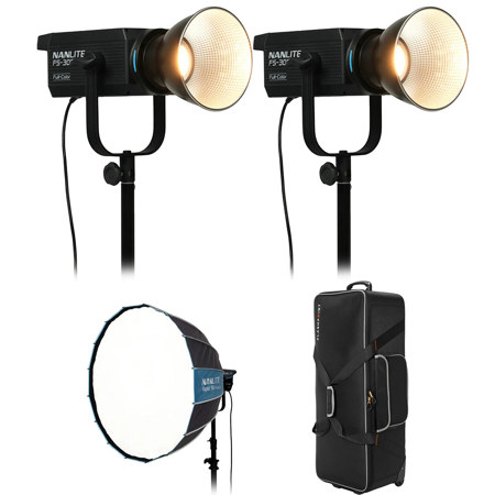 The Nanlite FS-300C is an AC-powered, all-in-one RGBW monolight that delivers useful 2700K-7500K color temperatures for photography and video production, in addition to 36,000 vibrant colors to create inspired effects, moods, and looks. This light gets powerfully bright when needed, and can be dimmed down low. It's easy to use, affordable, and provides highly accurate light.