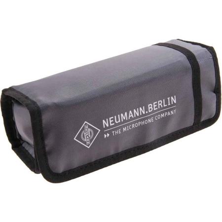 The Neumann Protective Gray Soft Case for KMS 104/105/140/150 and SG 105 is a replacement nylon pouch. It is a padded pouch with black trim for handheld microphones. It holds one handheld microphone, one microphone clip and papers.