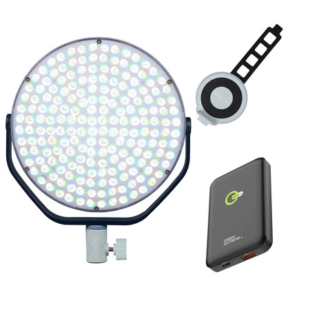 NanLite Miro 60C 60W RGBW LED Round Panel Light, Midnight Blue with Power Bank Holder for NP-F Battery, and 10000mAh 38.5Wh Qi Wireless Portable Power Bank