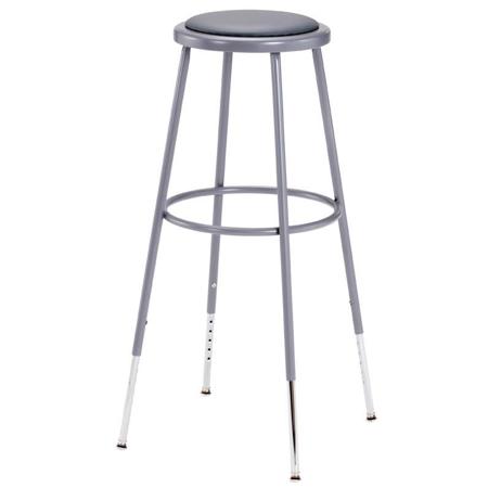 The fortified construction and soft comfort of the 6400 Series heavy-duty padded stools are ideal for hands-on educational settings like art rooms, science labs, home economics or shop classrooms. Height-adjustable legs extend from 19 to 27 in 1-inch increments. This reliable stool features a sturdy frame of 18-gauge steel tubing securely welded to a 14 diameter seat pan. Riveted through the steel pan are 1/2 -thick gray vinyl cushioning that will provide years of dependable use. Footrest ring is securely bonded to each leg with four spotwell contact points.