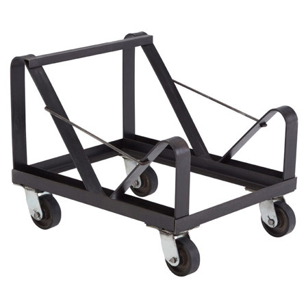 The DY-85 Chair Dolly, an 11-gauge steel unit, loads at an angle to securely and impressively hold up to 40 of the NPS 8500 Series stack chairs for easy transport and storage. Features black powder-coated paint finish that will not chip and 4 polyurethane casters (two that swivel) for easy mobility over nearly any surface. Each caster boasts a 165 lb. weight capacity for a total of 660 lbs.