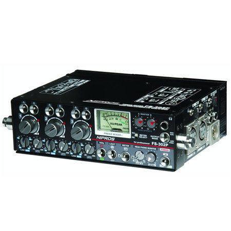 The Nipros FS-302P offers 3-channel monaural mixing. It comes with built-in hyper limiter for individual input channel and master limiter for output channel. The VU/PEAK two-way switchable meter enables to confirm exact audio recording level.