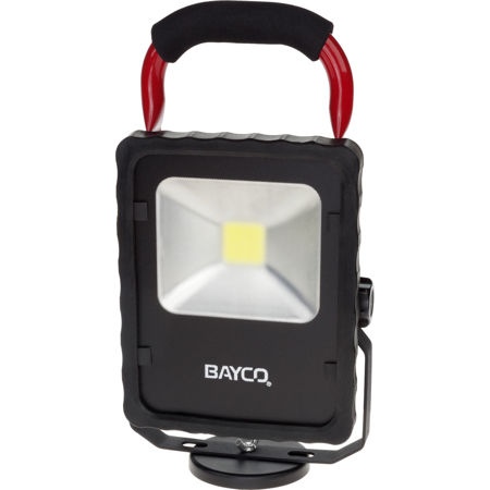 The Heavy-Duty Magnetic Base allows the light to be attached to most metal surfaces for hands-free operation. The work light has a tempered glass lens and is powder-coated for long wear durability. The comfort-grip handle makes transporting and positioning this work light a snap. The work light has a 12' 18/3 SVT cord and a single sealed push button switch.