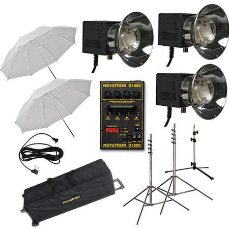Novatron D1500 are the most advanced power packs. They are fan cooled with fully integrated digital controls and readout. The 5-1/2 f-stop range of the D1500 gives it a maximum power of 1500 w-s and a minimum of 36w-s. This 1500 watt-second pack is flag ship power pack. It has plenty of power at an excellent value.