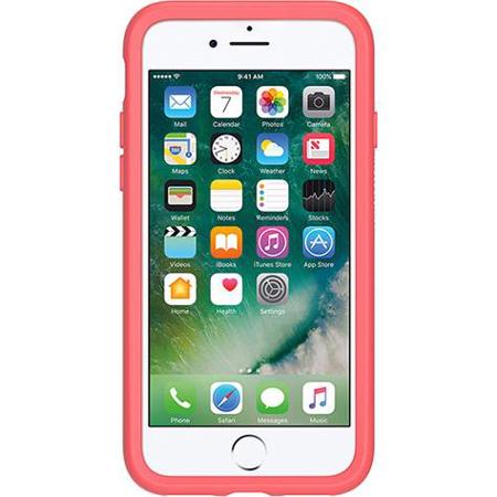 The OtterBox Candy Shop Symmetry Case for iPhone 7 is made of dual-material, one-piece design composed of a synthetic rubber interior and external polycarbonate shell. Synthetic rubber interior with honeycomb coring helps absorb shock. Hard polycarbonate exterior helps prevent scratches. Synthetic rubber raised beveled edge helps keep touch screen safe.