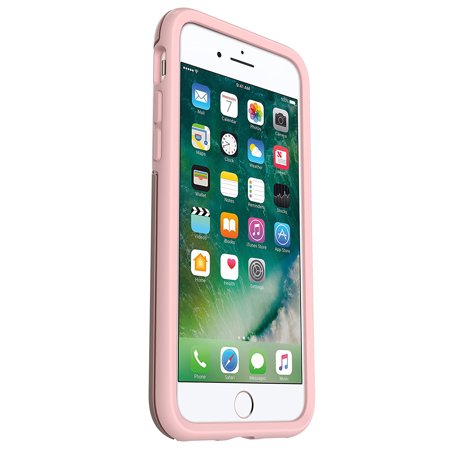 The OtterBox Symmetry Case for iPhone 7 and iPhone 8 is made of dual-material, one-piece design composed of a synthetic rubber interior and external polycarbonate shell. Synthetic rubber interior with honeycomb coring helps absorb shock. Hard polycarbonate exterior helps prevent scratches. Synthetic rubber raised beveled edge helps keep touch screen safe.