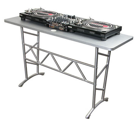 The table can comfortably accommodate a variety of DJ gear, from mixers and turntables to controllers and laptops, as long as the total weight is within the load capacity.
