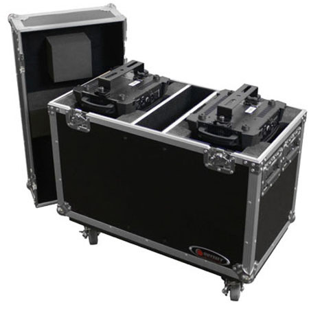 The Odyssey Chauvet Intimidator Spot/Beam LED 350 Lighting Road Case holds two Chauvet Intimidator Spot LED 350s. It is designed with individual compartments for each light and a storage compartment for clamps, cables and other related items. It also features a movable lid with stacking caster plates.