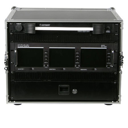 The Odyssey Flight Ready 8 Space Effects Rack Case is made of ABS plastic laminate over 1/4" plywood, made to protect and transport two space special effects 19" rackmount gear. The case has steel hardware, chrome-plated butterfly latches and recessed, spring-loaded handles. The case also has small steel corners, aluminum edging and rubber feet.