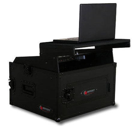 The Odyssey Black Label Series Flight Ready Glide-Style Combo Rack Case (10UX4U Space) features their patented sliding laptop platform mounted above a 19" ATA case. At your gig, set your laptop on the carpeted surface, plug in and you're ready to go. Slide it forward to use your laptop. Slide it back to use the mixer section underneath. Keep your laptop close and safe on a sturdy new Glide Style Combo case.