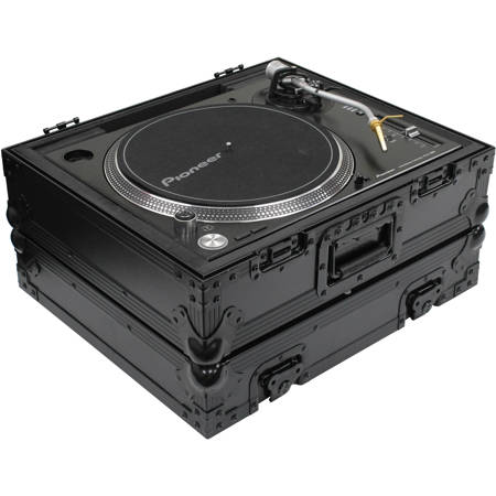 The Odyssey Black Label FZ1200BL Single Turntable Flight Case for Technics 1200 Style Turntables is made to the exact same standards as Flight Zone series but with a twist. Each compartment feature a valley or pit as you might call it that allows for more ventilation of the gear as well as an area for cables management. The components used to produce this series, including the aluminum trim and hardware, is now anodized and/or powder coated in "Black" for a one of a kind look that is so slick looking it's beyond cool.