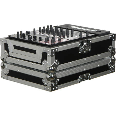 The Odyssey Flight Zone DJ Mixer Case is made of ABS plastic laminate over 3/8" plywood with foam lining made to ship, carry and protect a 12" mixer. The convenient "V" shaped front panel provides full protection during transit but slides out for access to front mixer controls during use. The stackable detachable lid doubles as an elevated base for those lower tables or taller DJs. The case has steel hardware, chrome-plated butterfly latches and recessed, spring-loaded handles. It also has steel corners, aluminum edging and rubber feet. It meets ATA 300 specifications for shipping cases.