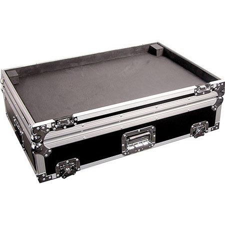 The Odyssey Flight Zone Live Sound Mixer Case is made of ABS plastic laminate over 3/8" plywood, designed to ship, carry and protect a Peavey 32FX channel mixer. The case has steel hardware and chrome-plated butterfly latches. It is transported by recessed, spring-loaded handles or built-in corner wheels. The case also has steel corners, aluminum edging and rubber feet. The case meets ATA 300 specifications for shipping cases.