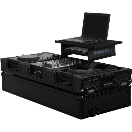 The case contains dual two tier gliding platforms for your laptops while the built-in well is for your 12" mixer. The case is supplied with special ventilation pits for increased air flow and heat dissipation. Heavy-duty ball corners protect the case from contact while on route and the built-in wheels make transport easy.