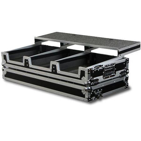 The case has everything a working DJ needs. It holds two large format table top CD/digital media players and a 10" width mixer. This case will also hold your interface, hard drive, midi controllers and other DJ Remixer essentials. In addition, the case contains a laptop platform that "glides" over the mixer area so you won't have to reach to execute a function or look up a file.
