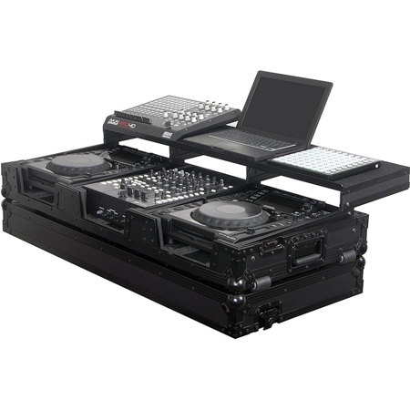 The case has everything a working DJ needs. It holds two large format table top CD/digital media players and a 12" width mixer. This case will also hold your interface, hard drive, midi controllers and other DJ Remixer essentials. In addition, the case contains a laptop platform that "glides" over the mixer area so you won't have to reach to execute a function or look up a file.